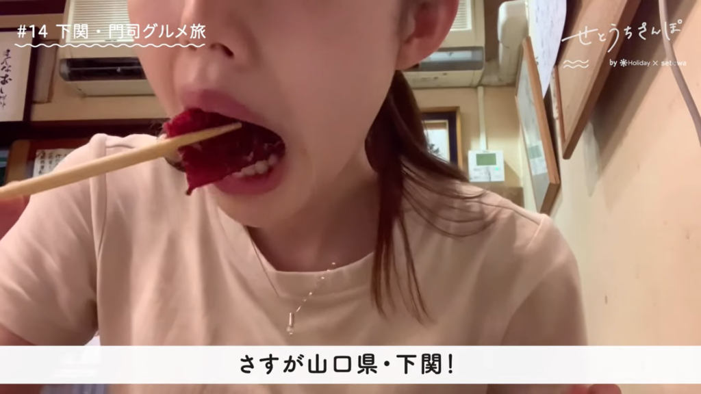 こんにちは、りなです! 今回は下関でひとり旅してきました✨海鮮を味わいつつ、絶景の神社やお向かいの門司港にも行って、大大大満足の1泊2日🙌 お寿司にふぐ刺し、くじらの尾の身、、、どれもめーーーっちゃ美味しくて幸せのグルメ旅でございました🤤🌊