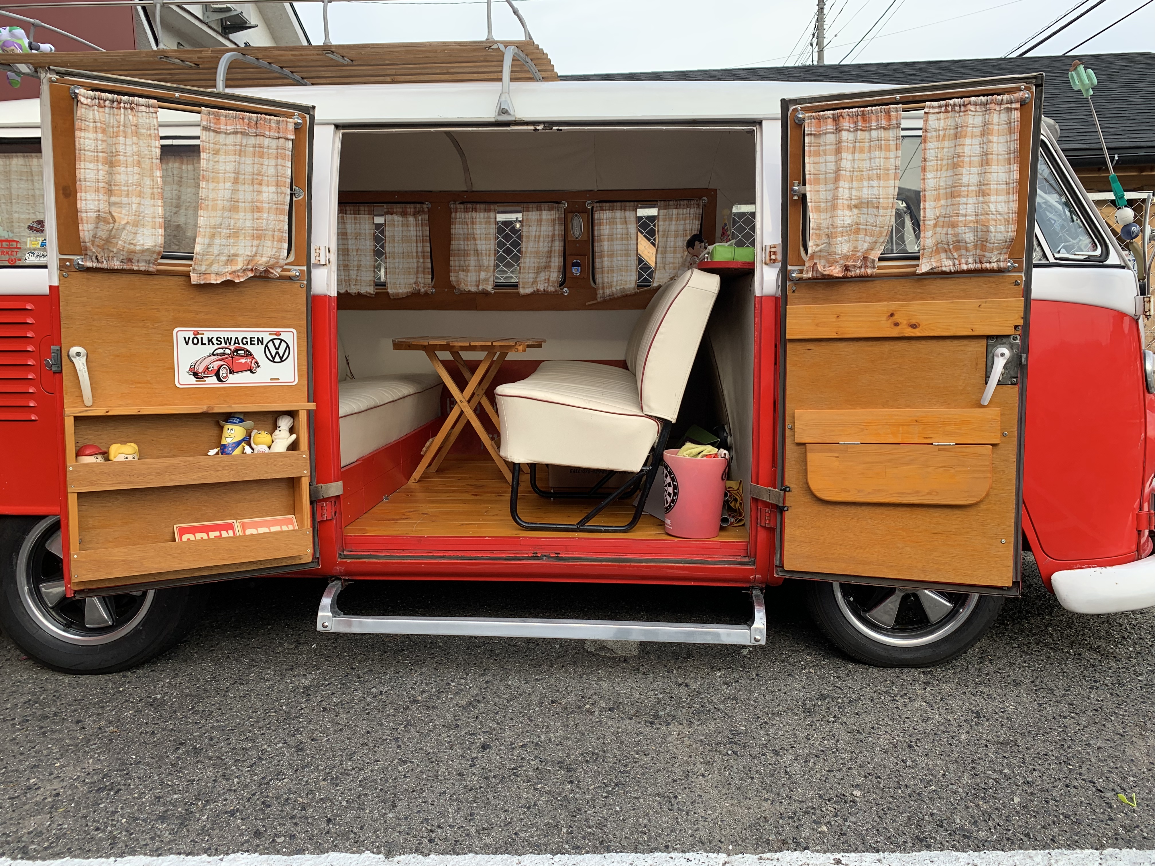 店舗の前には可愛いクラシカルなワーゲンがお出迎え。中に入れるよう、オープンになっていました。可愛い!