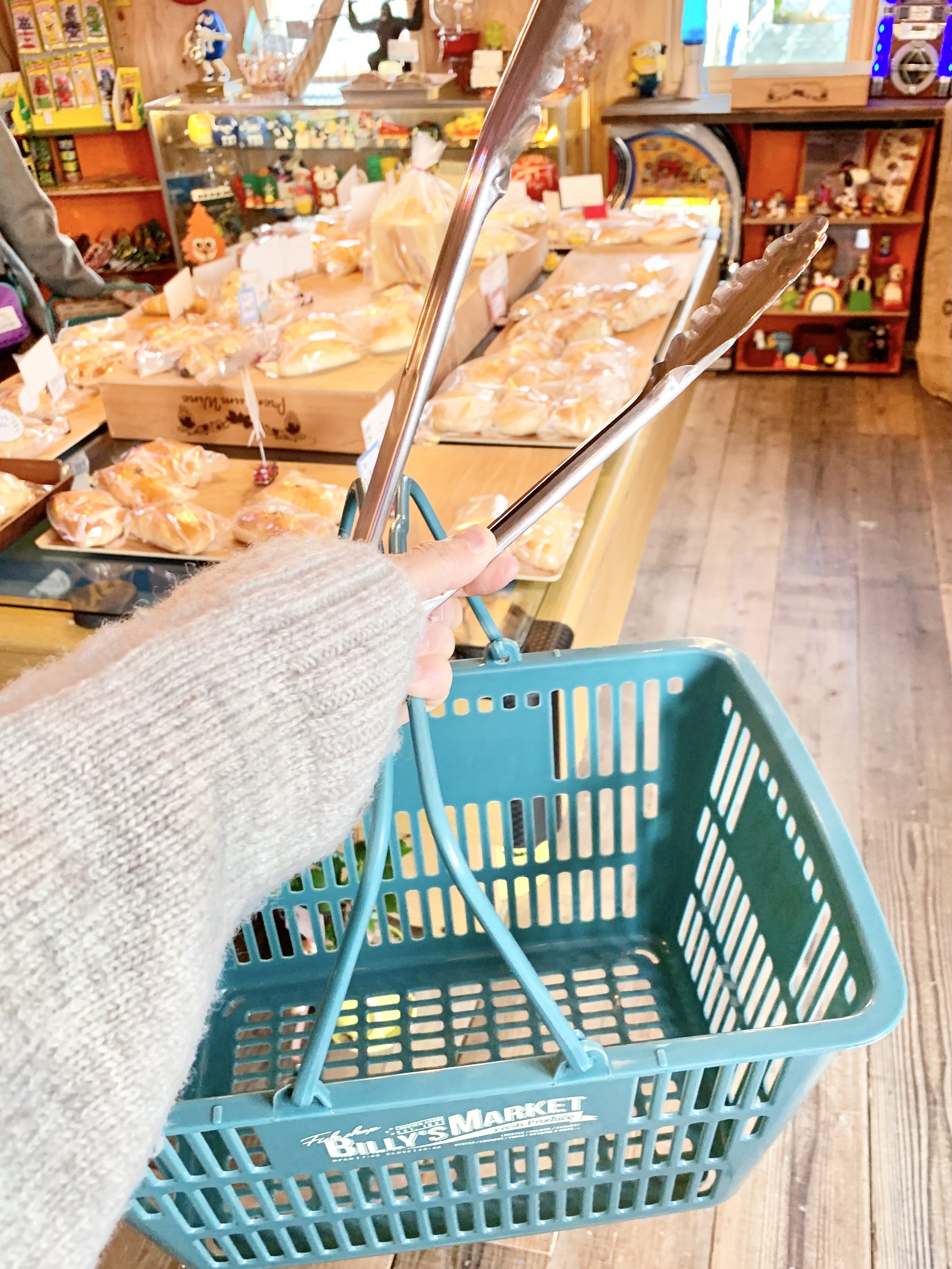 アメリカンな雑貨も勢揃いする店内。パンを選んだ後は雑貨も見ながらレジへ!