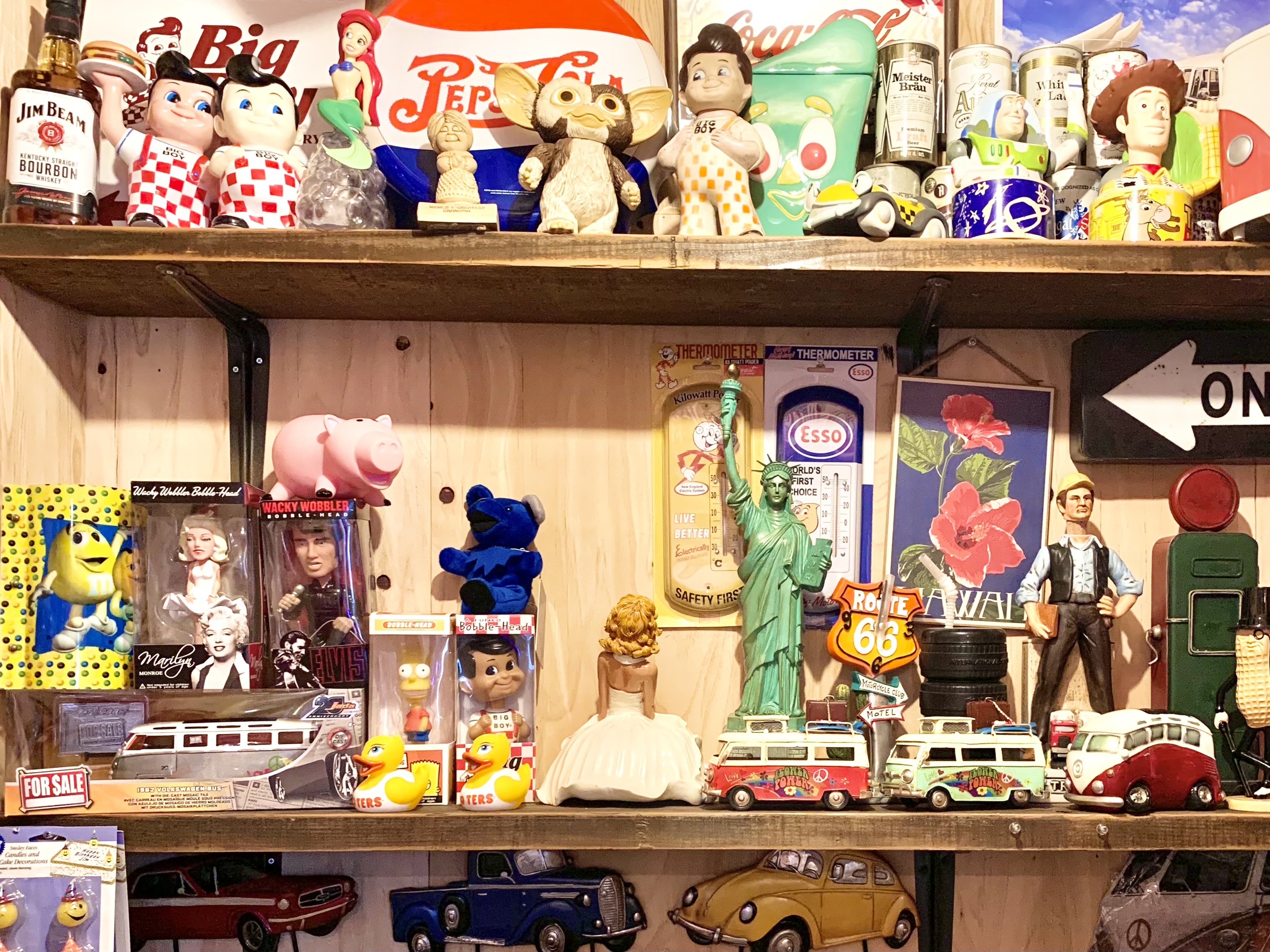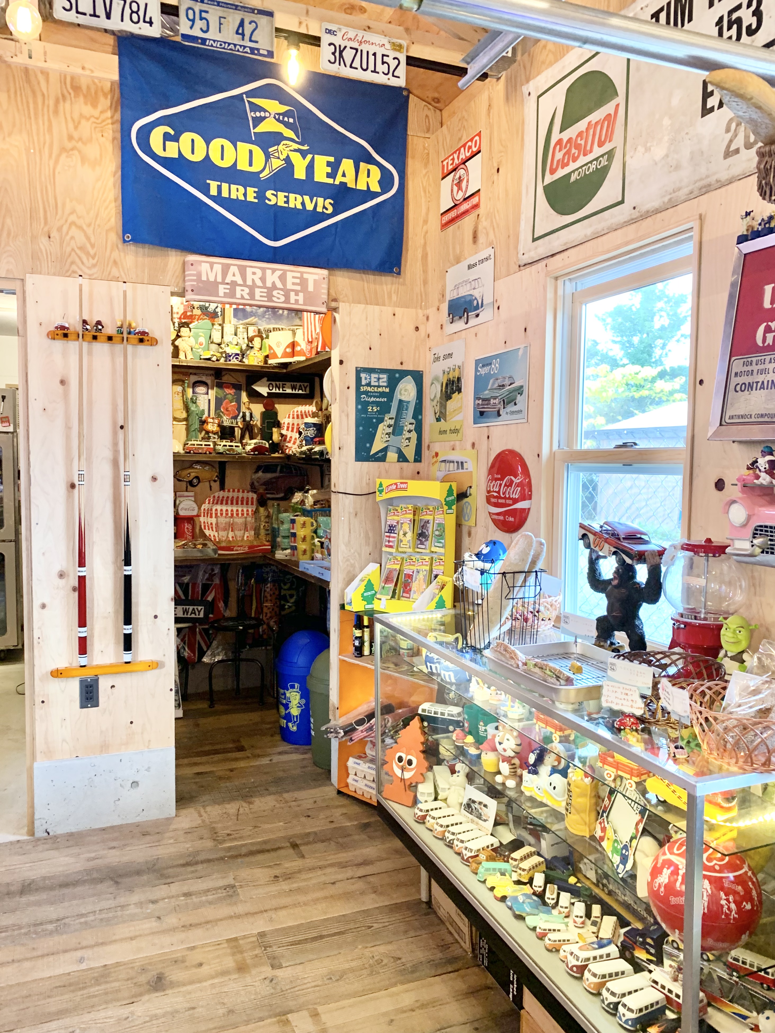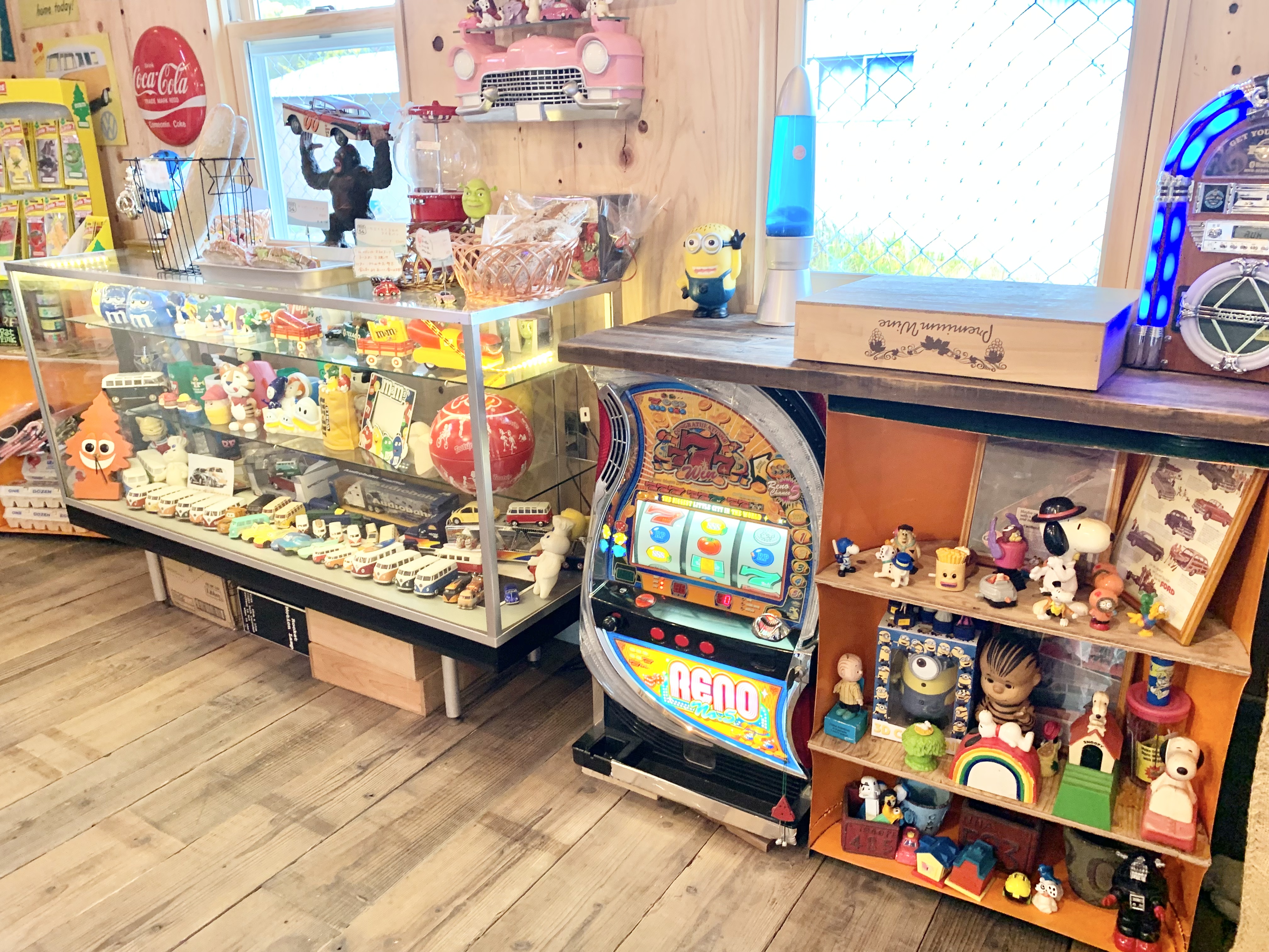 アメリカン雑貨もたくさん揃っていてワクワクできる店内。1960年代のアメリカンガレージがコンセプトになっています。ドライブの立ち寄りスポットとしてもおすすめ!