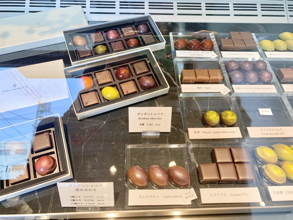 ボックスタイプのボンボンショコラの他、一粒280円〜も購入可能。シェフのオススメや、定員さんも丁寧に説明してくれるので、選ぶのも楽しい。
