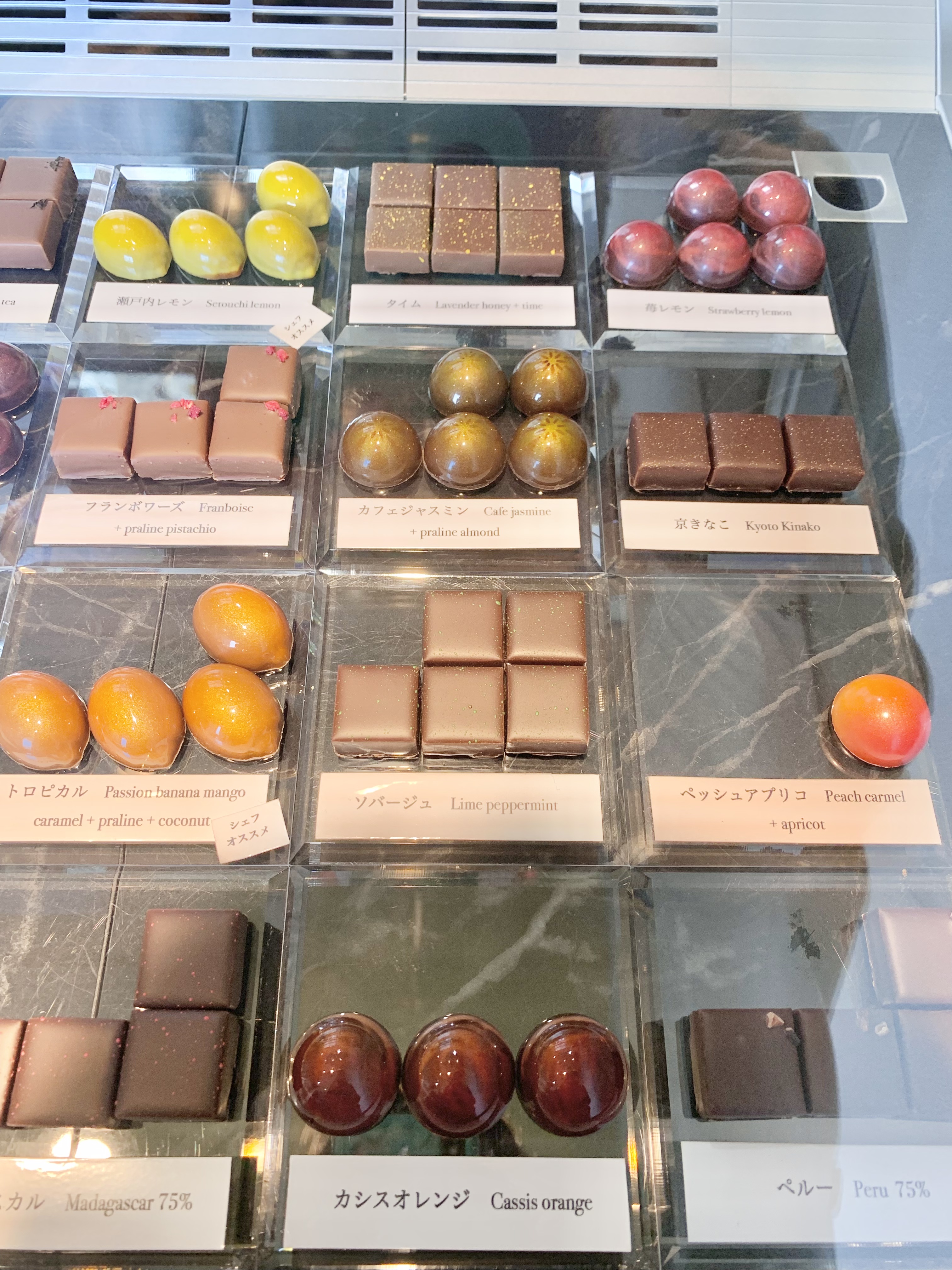 私は『カシスマロン』『巨峰シャンパン』『アッサム』『マダガスカル』『瀬戸内レモン』を購入。