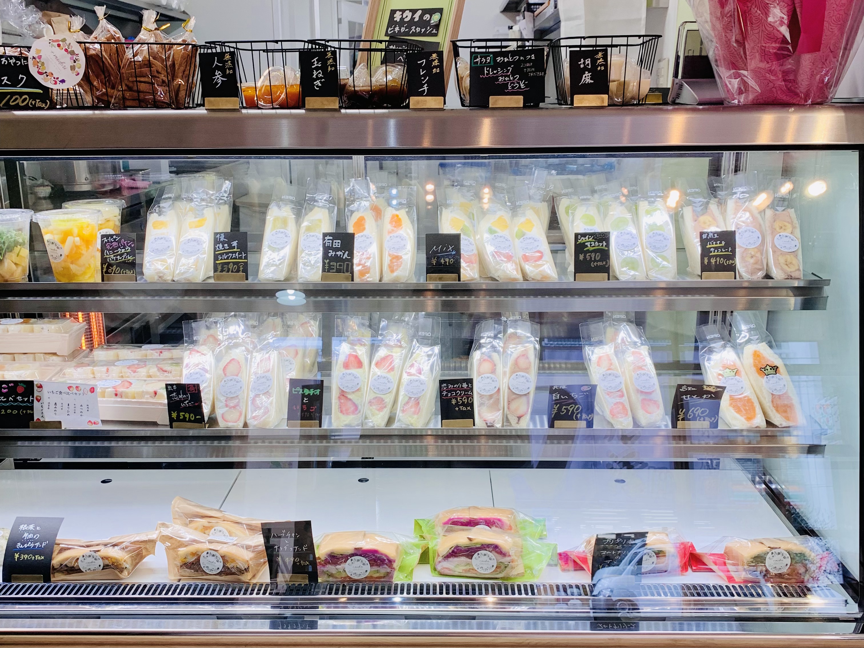 店内に入ると、目の前にサンドイッチがずらり。右手のケースにはサラダや惣菜が並んでいました。