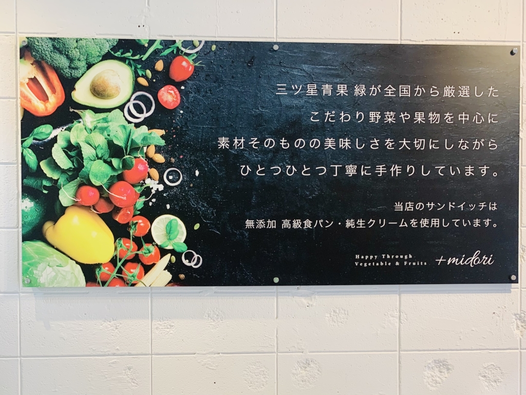 幟町にある「三つ星青果 緑」でお買い物をしていて、プラスミドリがオープンしたことを聞き、ランチ用のサンドイッチを買いに早速いってみることに。