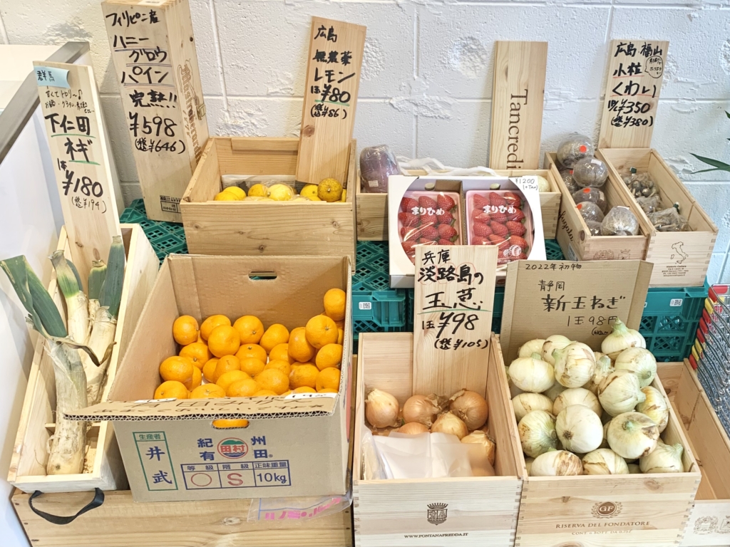 店内には、お野菜やフルーツの販売も一部されていました。プロの料理人も通う「三ッ星青果 緑」さんが厳選したお野菜を、手軽に食べることができるのは、品目も多く取れるし、調理の手間もなくてとっても嬉しい!