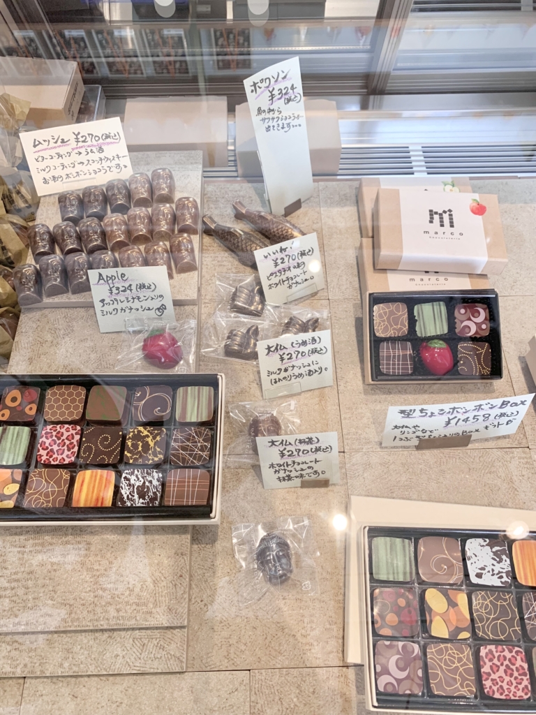 アルパークでのお買い物がえり、14時頃に訪問。店内にはお客さんがいなかったのでゆっくりとチョコレートを選ぶことに。
