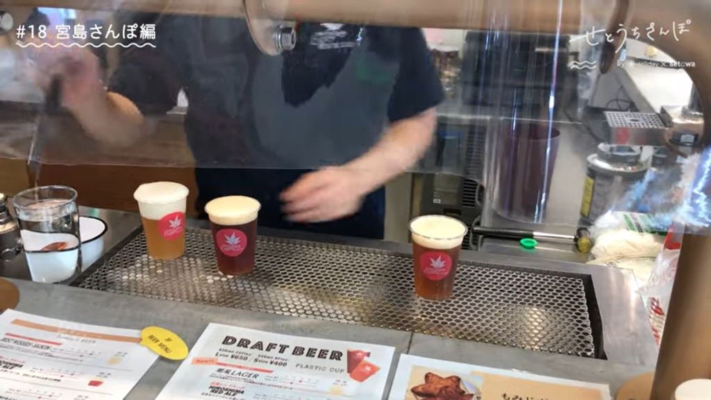 もみじまんじゅうに牡蠣にビール、ここに来る前にけっこう食べて来たけど、