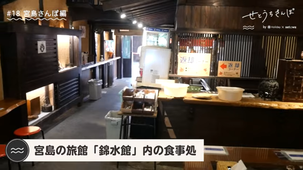 宮島の旅館「錦水館内」の食事処「まめたぬき」