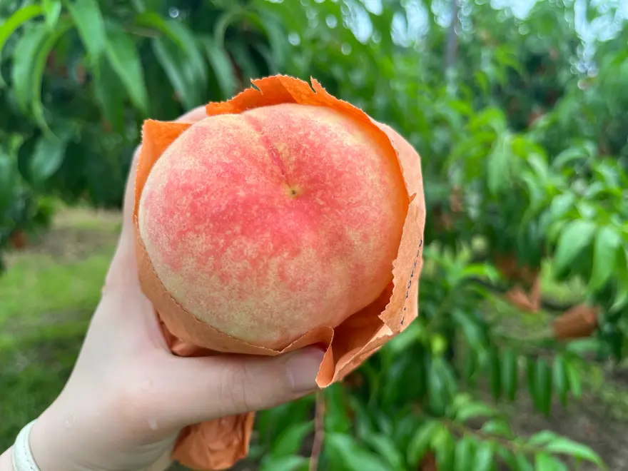 今回は「白桃狩り2個+試食2個」の体験プランで予約♪