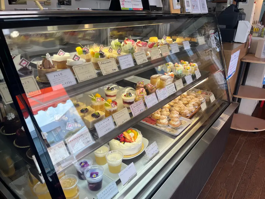 パティスリーカフェ Jeu Coeur(ジュクール)は、岡山県岡山市南区浦安本町にあるケーキ店です。ショーケースには豊富な種類のケーキやタルトが並んでおり、見るだけでも楽しめます。イートインも可能で、ケーキを注文するだけでパウンドケーキやプリンなどの豪華な盛り付けがされるそうです。またケーキとドリンクを一緒に注文すると100円引きのお得なサービスがあります。さらに、InstagramやGoogleに投稿してお会計時に見せると焼き菓子がもらえるサービスもあるようです。