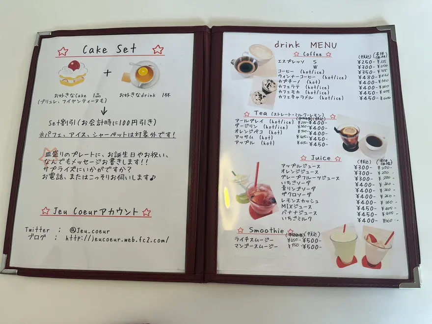 ケーキとドリンクを一緒に頼むと-100円してくれるお得なサービスも❤︎