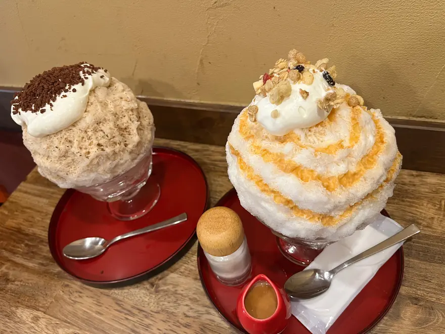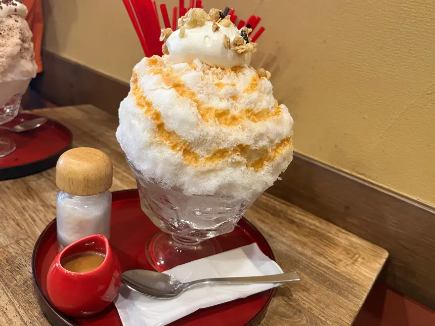 ふわふわ氷で頭がキーンとならないし、甘すぎない生クリームはどんどん食べられちゃう。氷と生クリームってこんなに相性いいんだね☺️