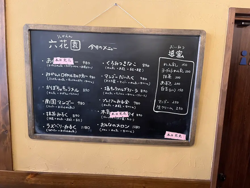 岡山県岡山市北区にある「六花園」というスイーツのお店は、春夏はかき氷、秋冬はパンケーキが楽しめるお店です。メニューは黒板に書かれており、珍しいメニューも多く、迷ってしまいます。口コミによると、落ち着いた雰囲気の店内は、ゆったりとした時間を過ごすのにもピッタリとのこと。