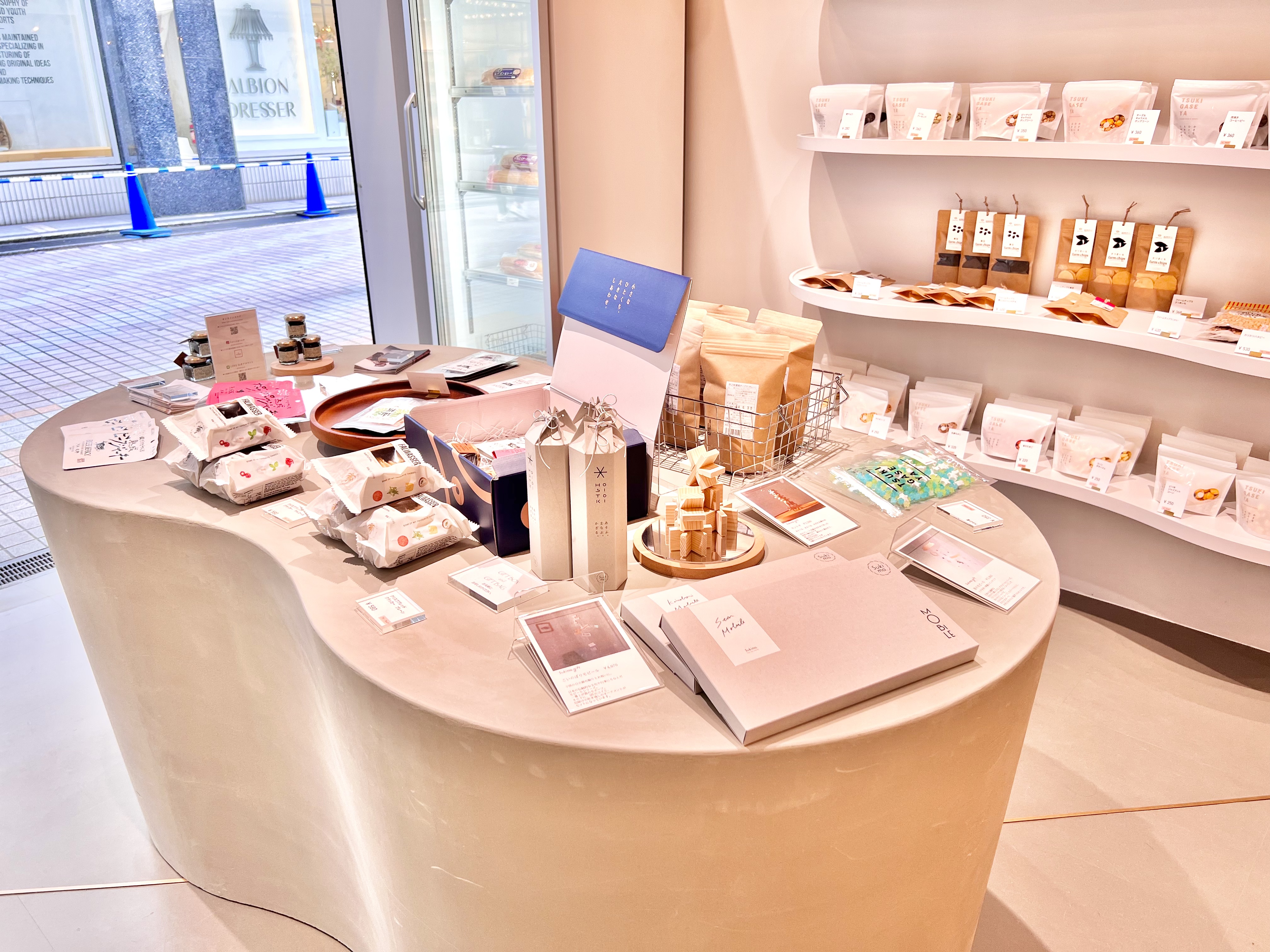 店舗は一階で開けた作りと可愛らしいロゴで、気軽に入りやすく、飲食店さんで人気の、生黒胡椒の塩漬けなどの一味変わった調味料や、広島県の企業の作るおやつなども置かれています。