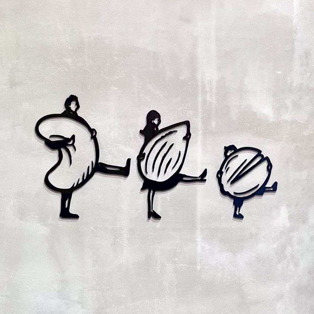 ナッツを持った可愛いロゴに、ビーンズのような曲線のテーブルやボードがとっても可愛らしい店内!