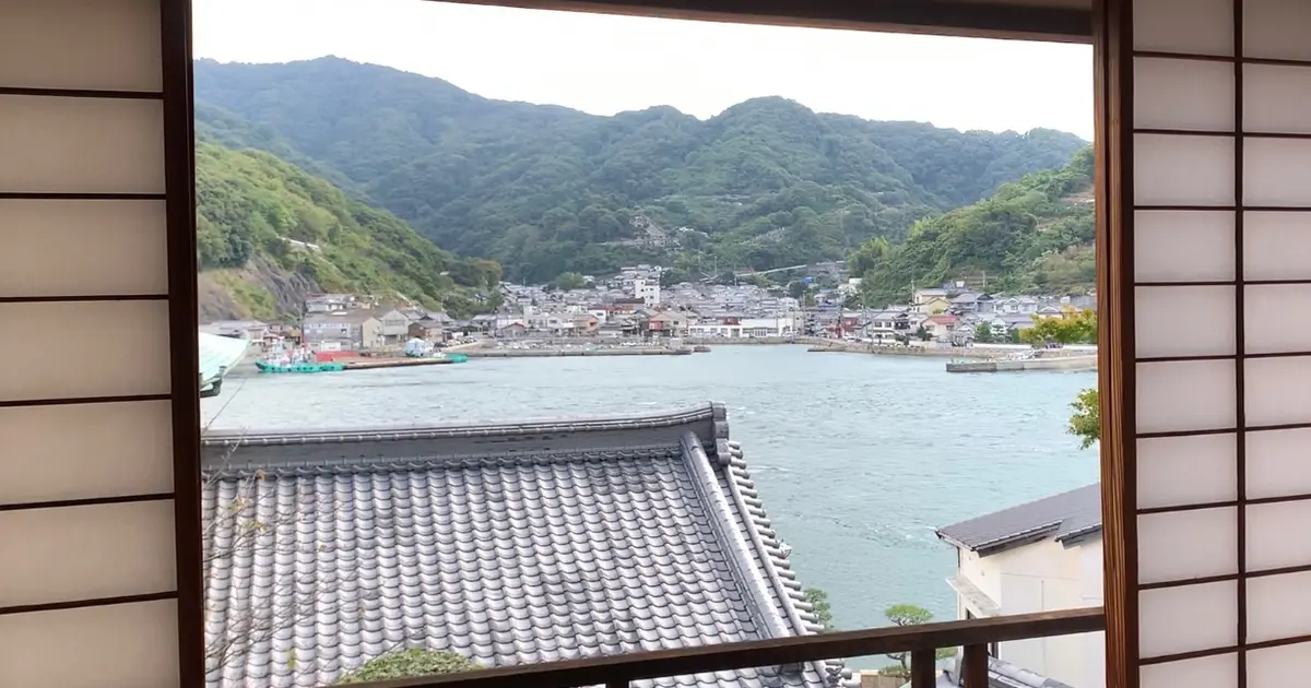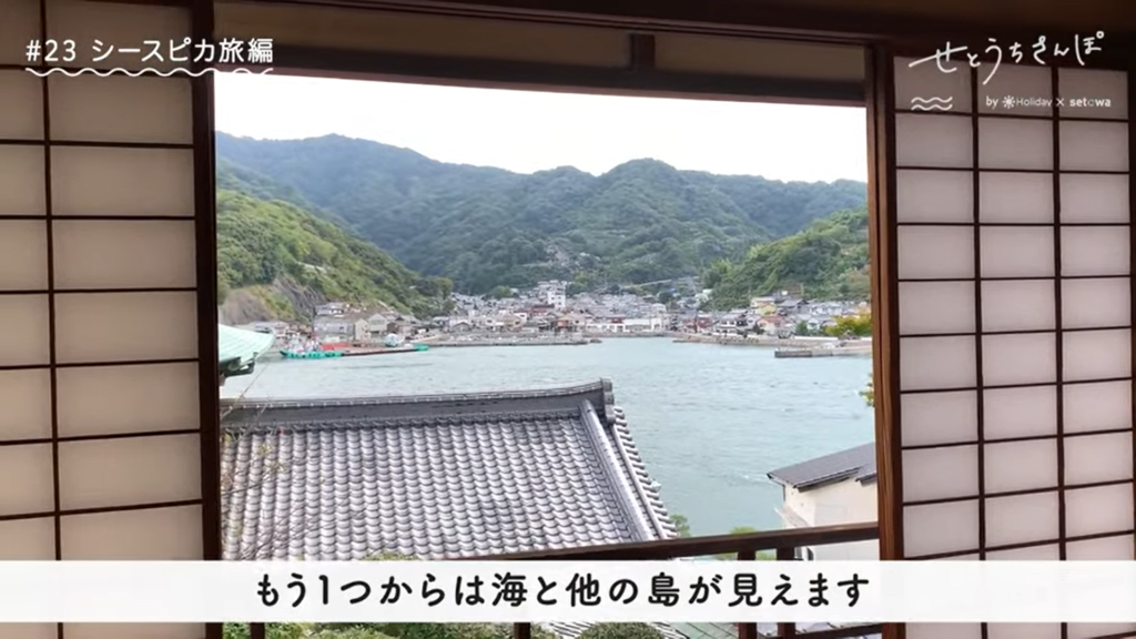 2つある窓のうち、1つからは橋が見えて、もう1つからは海と他の島が見えます