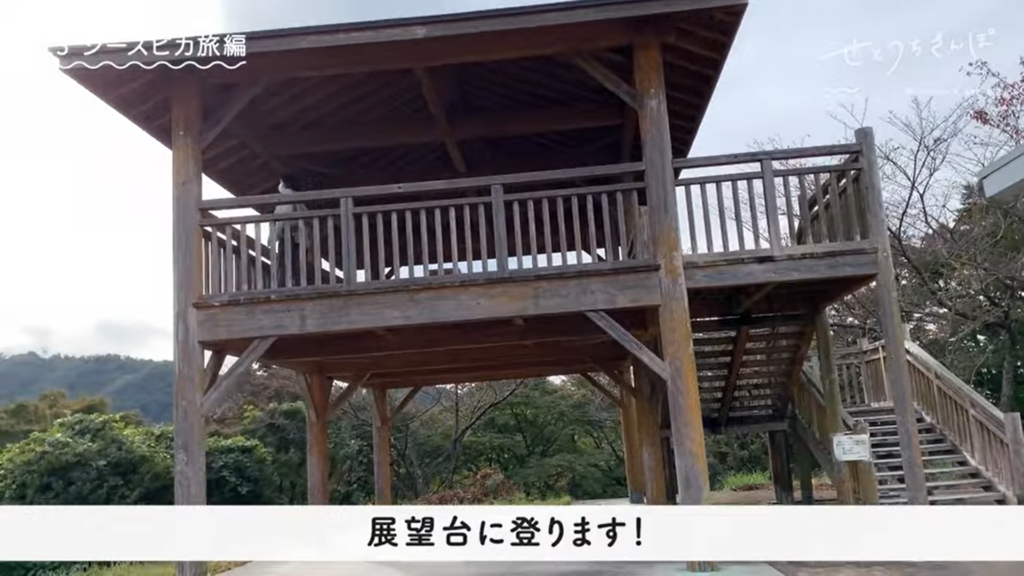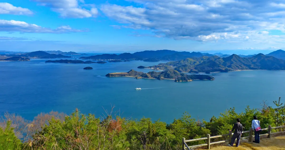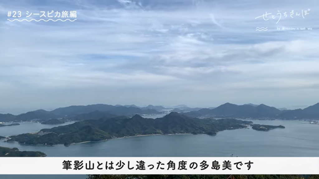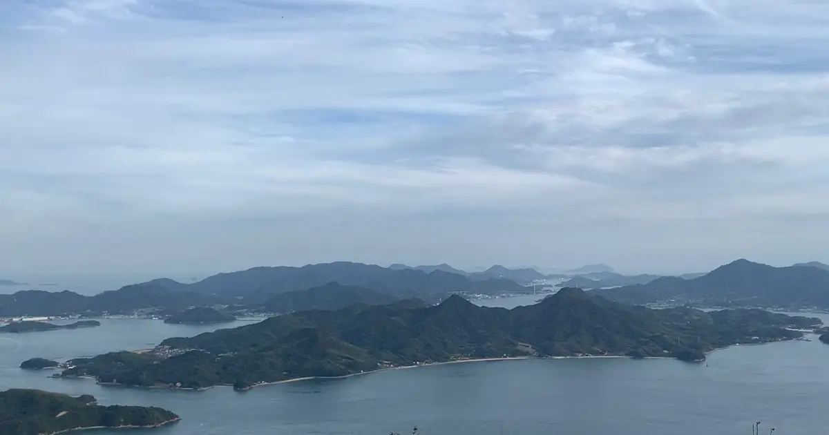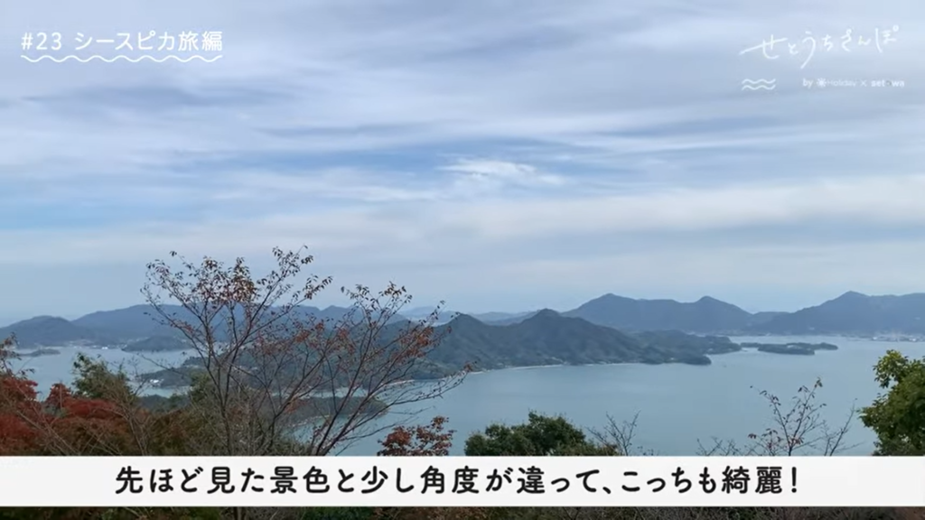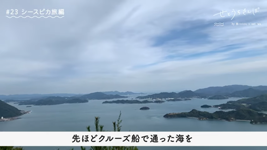 先ほどクルーズ船で通った海を、山の上から眺めます
