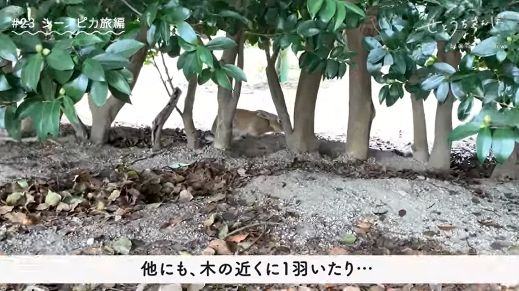 潮風に吹かれる木々と茶室、雰囲気がとても良いです