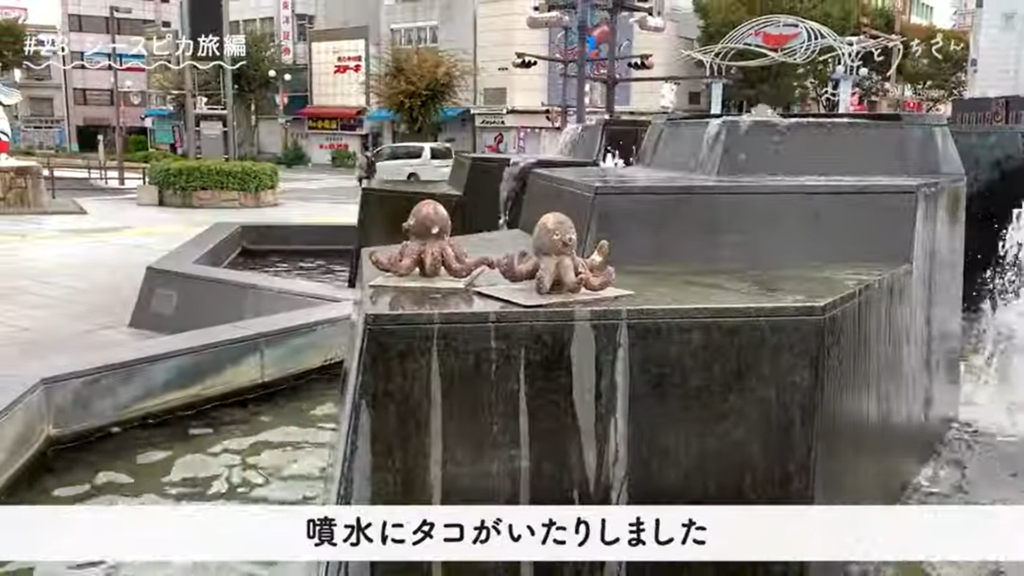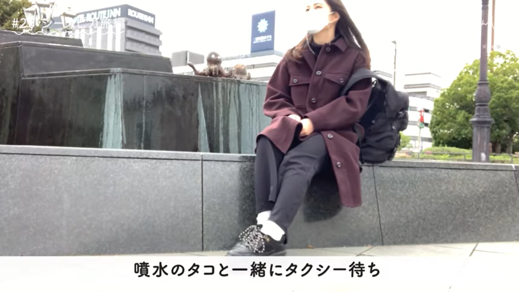 あとはタクシーを待つのみです。噴水のタコと一緒にタクシー待ち