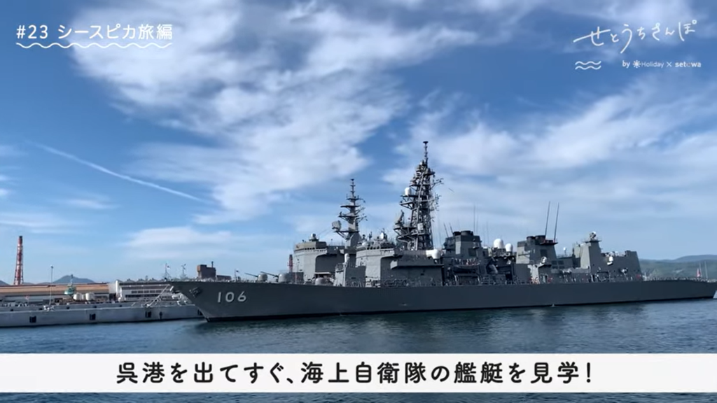 呉港を出てすぐ、海上自衛隊の艦艇を見学