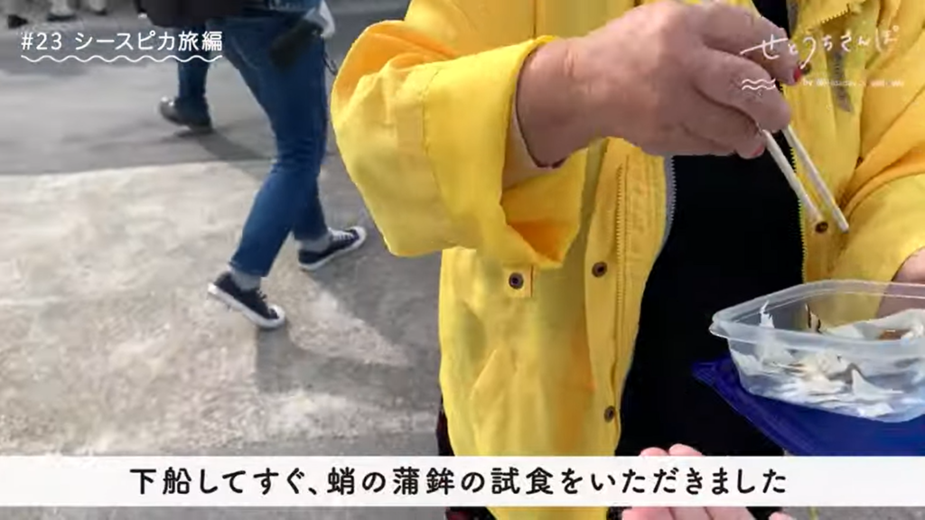 下船してすぐ、蛸の蒲鉾の試食をいただきました