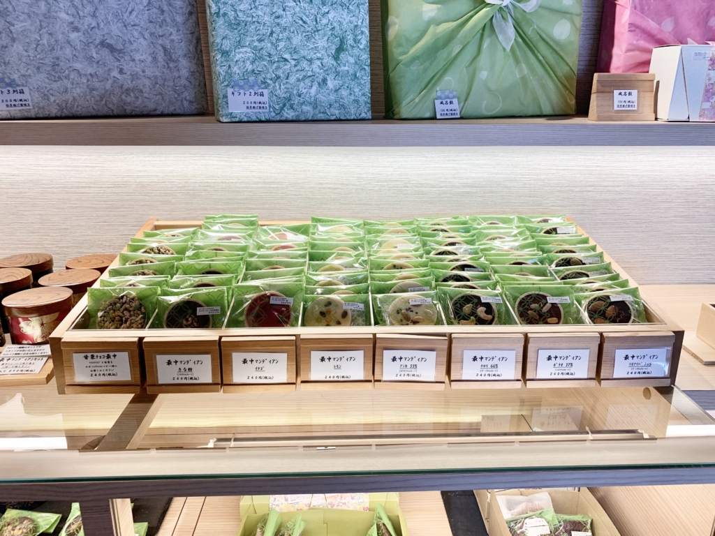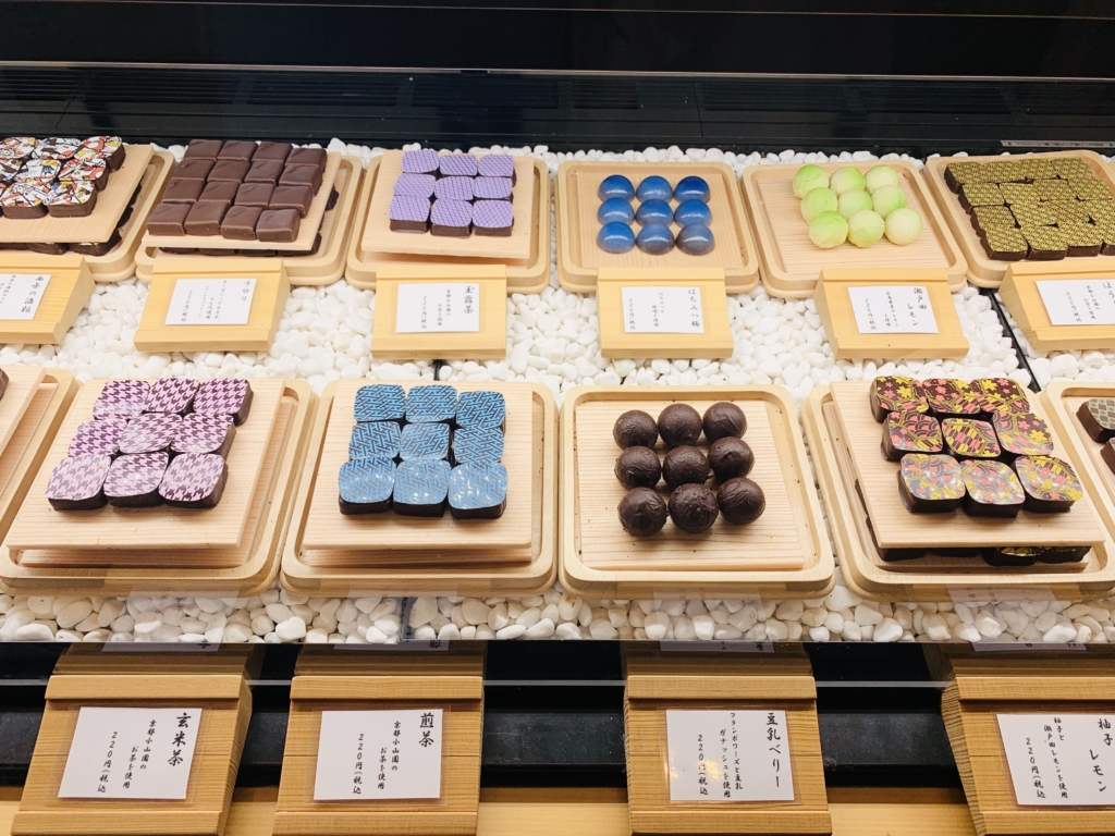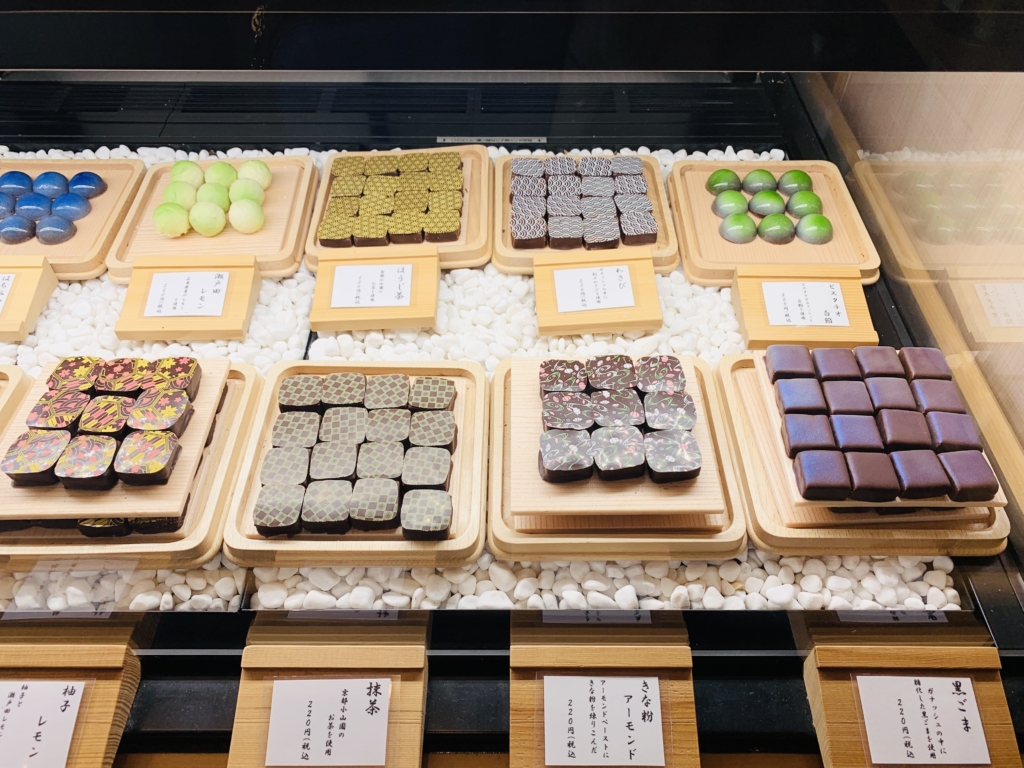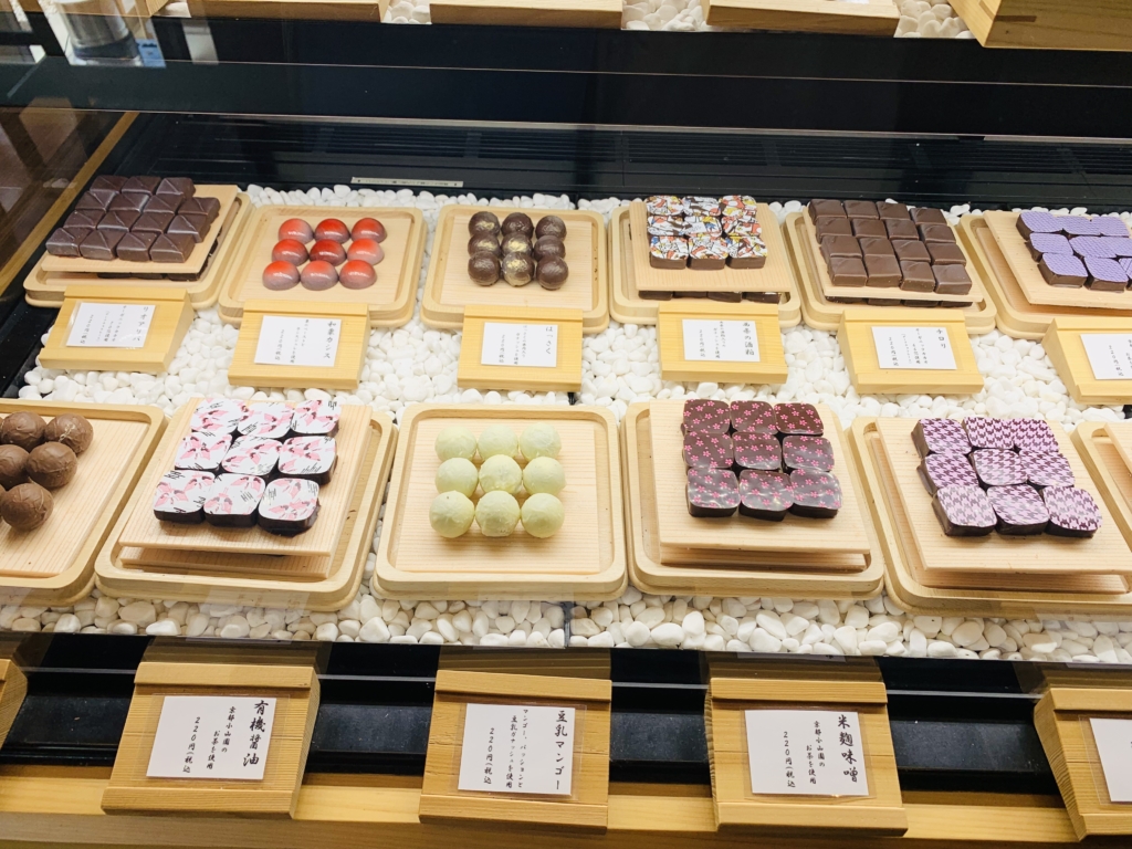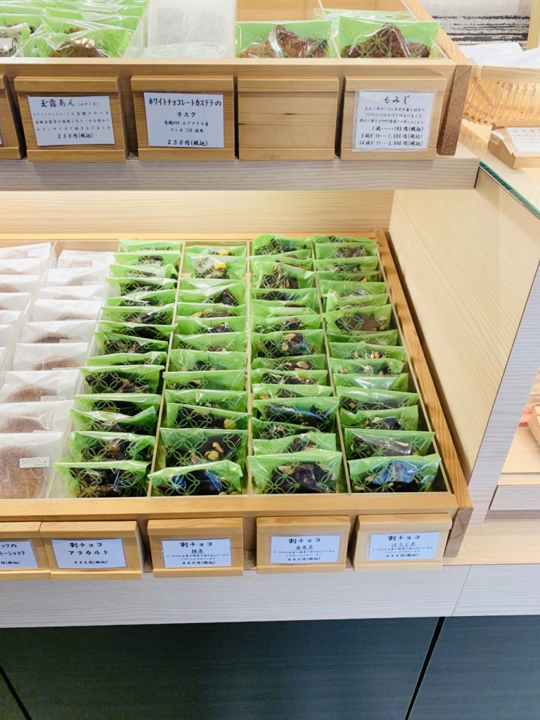 厳選した和の食材とハイカカオを組み合わせたケーキやプラリネが揃います。醤油や味噌など、味の想像のできないものも多数。どれにしようか迷えます。