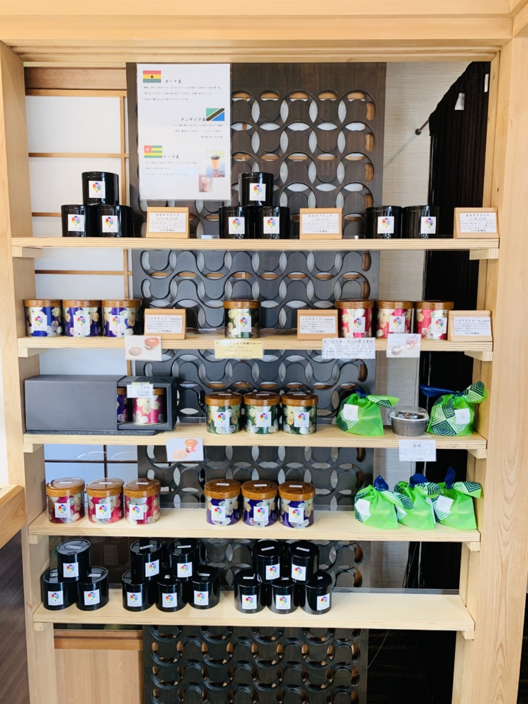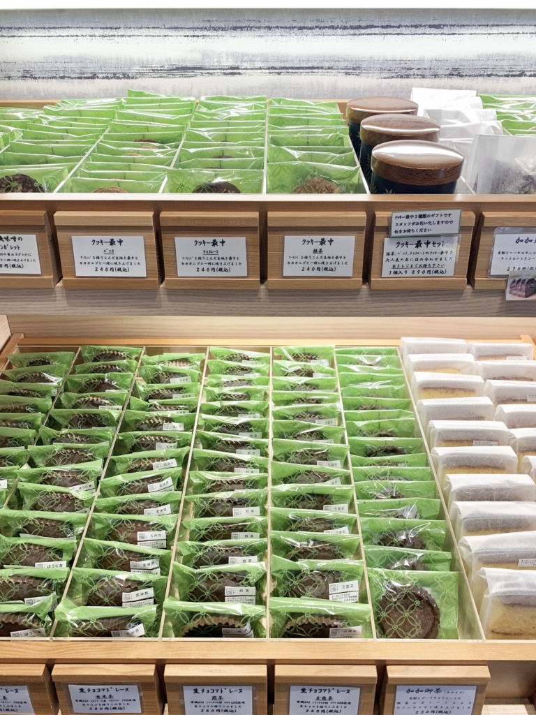 店内は、入ってすぐに焼き菓子などが陳列されています。奥に進むとケーキなどの洋菓子コーナーがある「カカオ果」コーナー。オーガニックカカオを使用しているんだそう。