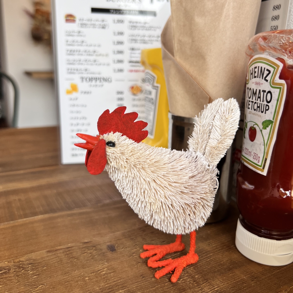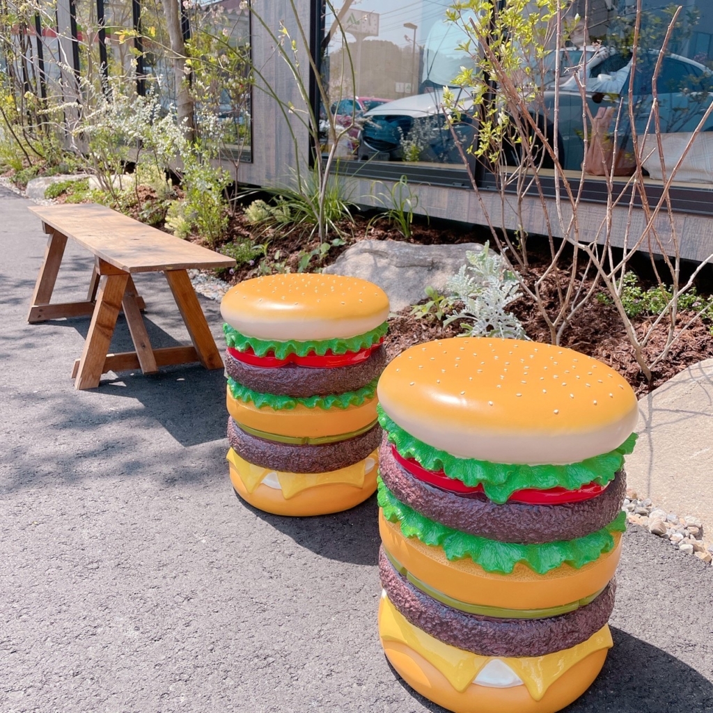 店の前には、ハンバーガーのベンチ?イス?があってフォトスポットにもなっていました。