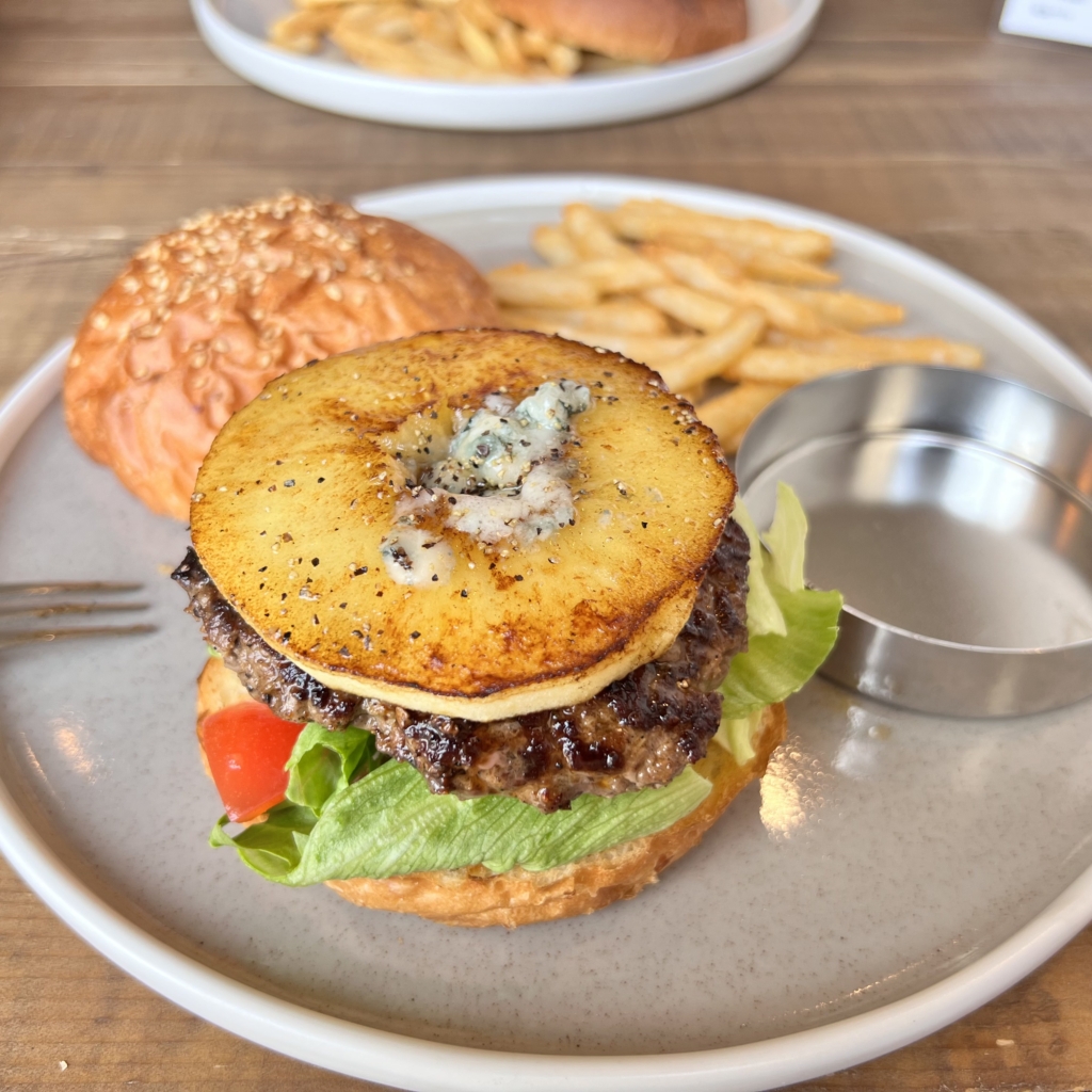 りんごとゴルゴンゾーラの入る、three threeバーガーにすることに!一緒に行っていた友達は、アボカドチーズバーガー!