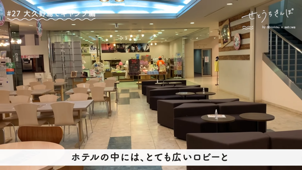 ホテルの中には、とても広いロビーと売店、カフェがあります