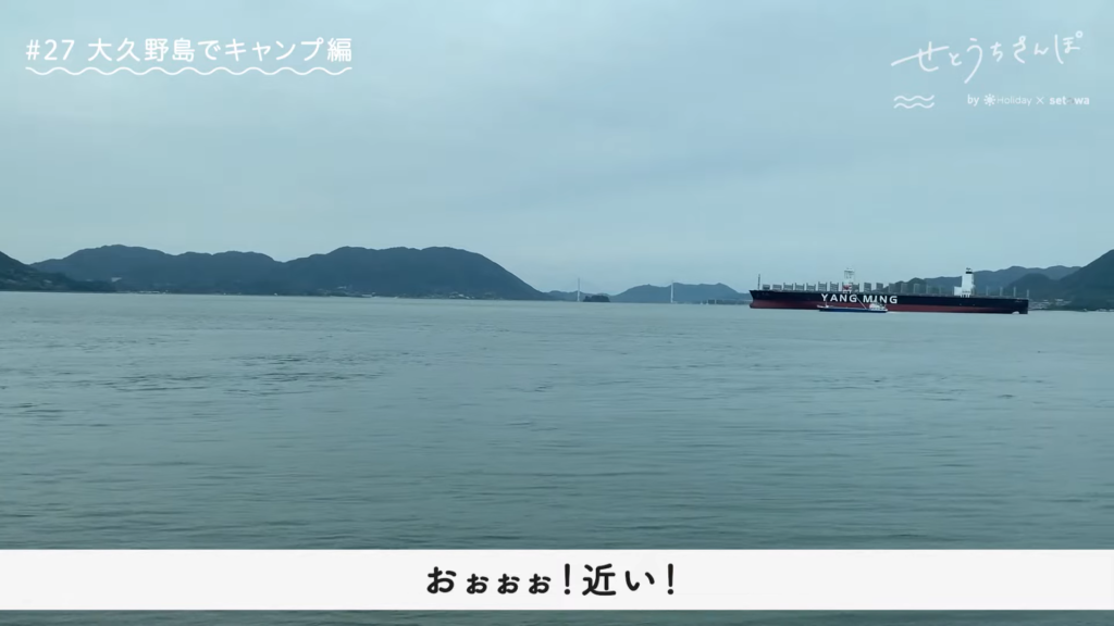 船で分、大久野島に到着!