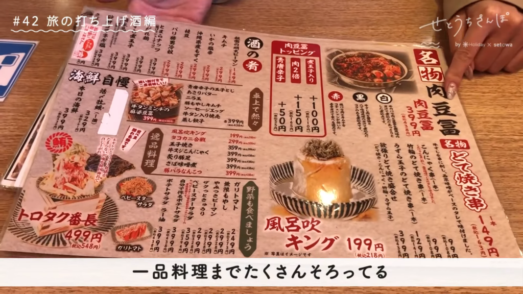 リーズナブルで庶民的なメニューが定食から一品料理までたくさんそろってるよ