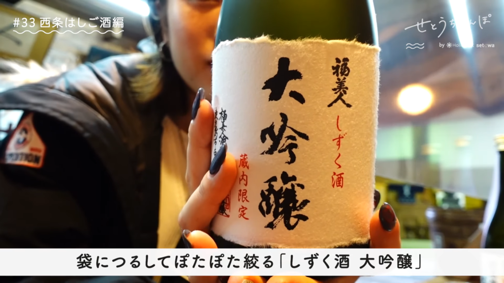 袋につるしてぽたぽた搾る「しずく酒大吟醸」