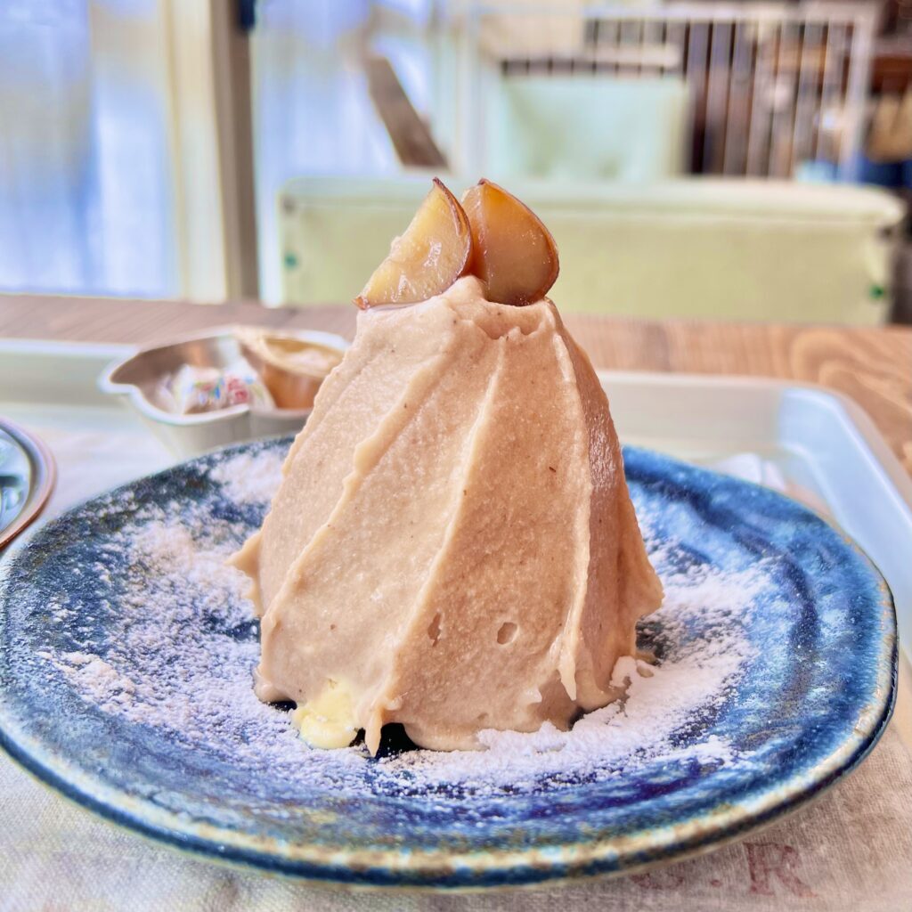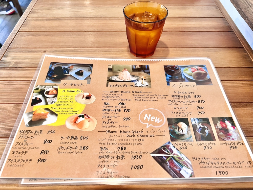 カフェメニューは、SNSでアイスのモンブラングラーセが人気ですよ。ケーキはレジ上にあるホワイトボードにその日のケーキメニューが記載されています。