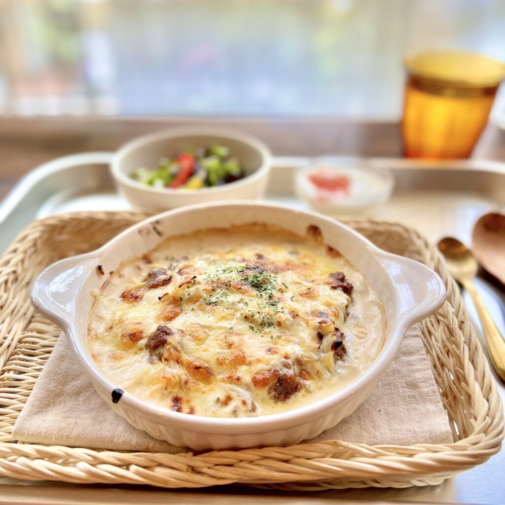 熱々のドリア♪ホワイトソースではなく、アンロビ人気のクラムチャウダーとチーズがたっぷりかかっています!
