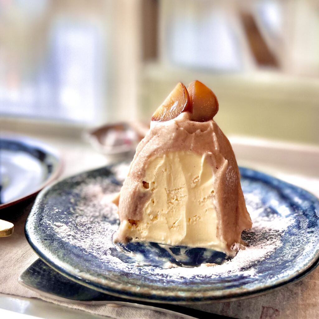 ホットコーヒーとセットにしておねがいしました。自家製のマロンクリームをたっぷりまとったバニラアイス。