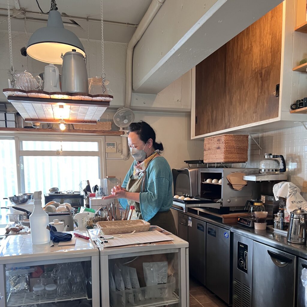 ついつい長居してしまう、居心地のいい店内。お会計時にレジ奥にあるキッチンではパンの仕込みをされていました!