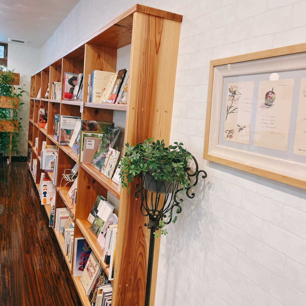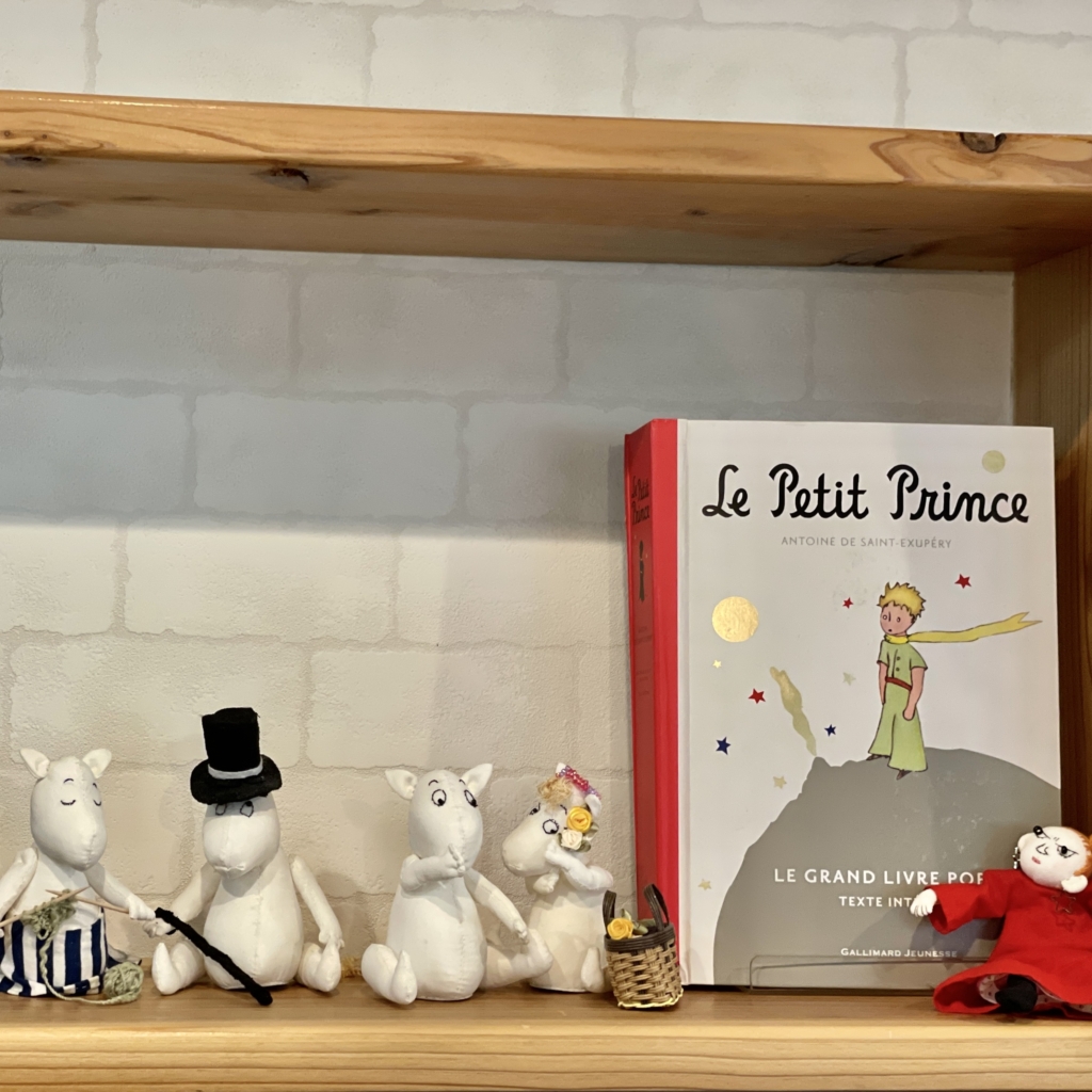 店内は、北欧風の居心地の良さ。壁に並ぶ本棚や、ムーミンの置物、天使のライトなど、お家っぽいくつろぎ空間なのに、とってもおしゃれでワクワクできちゃう。