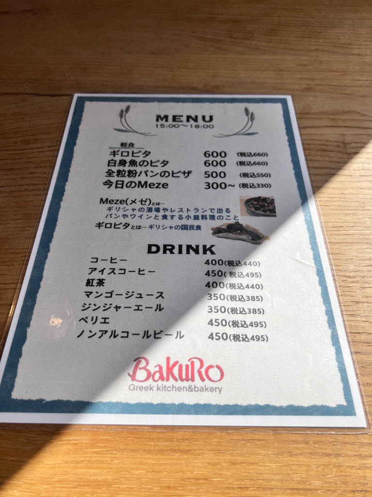 メニューはランチやテイクアウトもあり!この日は15時半頃に伺ったので、軽食とドリンクメニューでした。