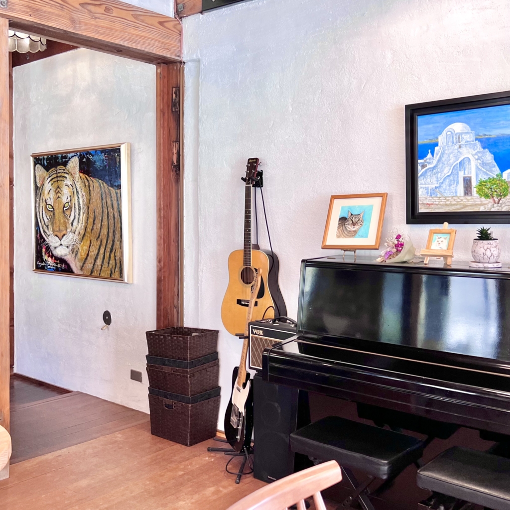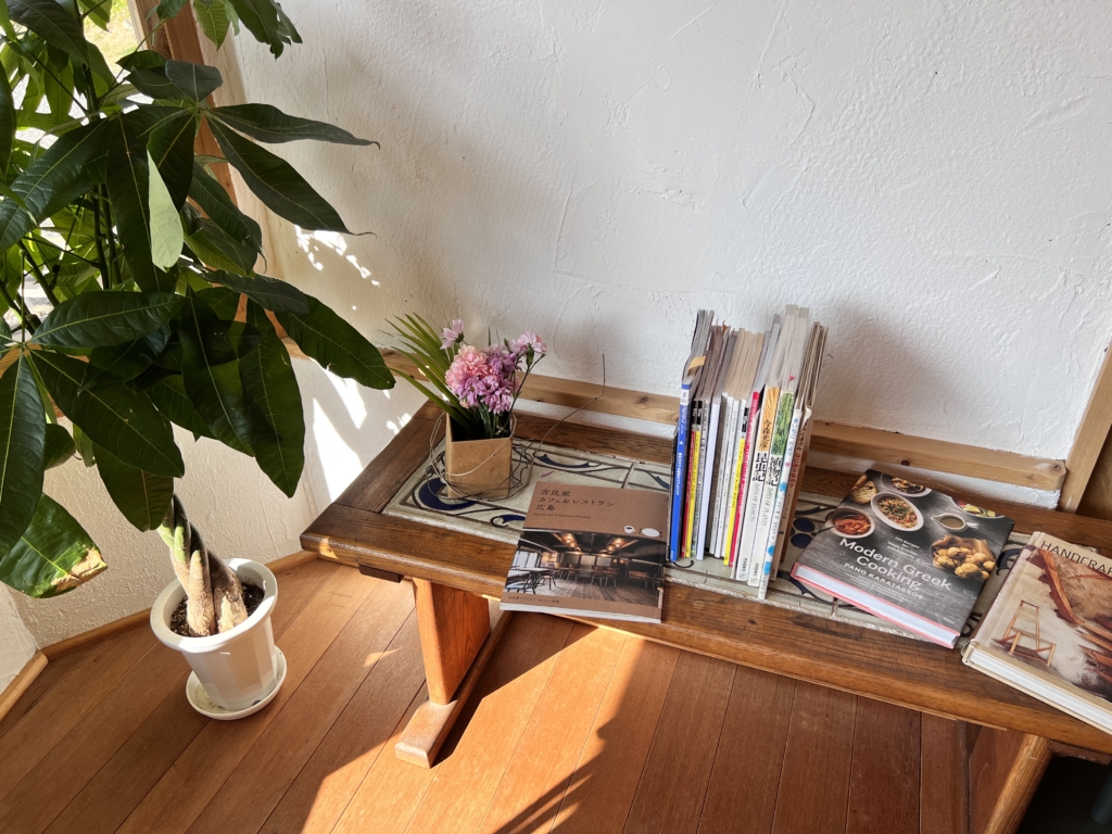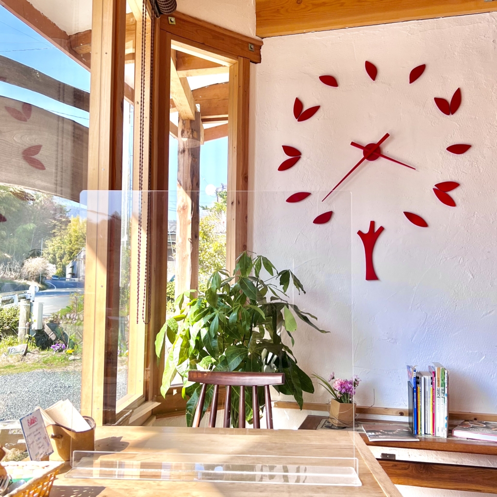 店内も広々とした空間に、可愛らしい時計やピアノなど。優しく日の光が差し込んでいて、なんとも癒される空間。
