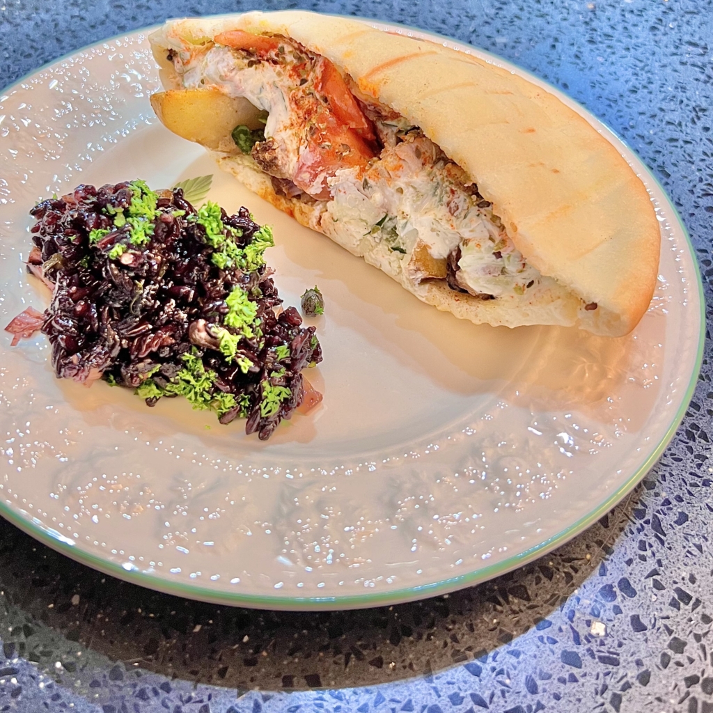 具材たっぷりのギロピタは、爽やかなヨーグルトのソースがとっても美味しい!!黒米のメゼも程よい酸味で、パセリのアクセントが最高です!どちらも日本人も好む味わいでした。