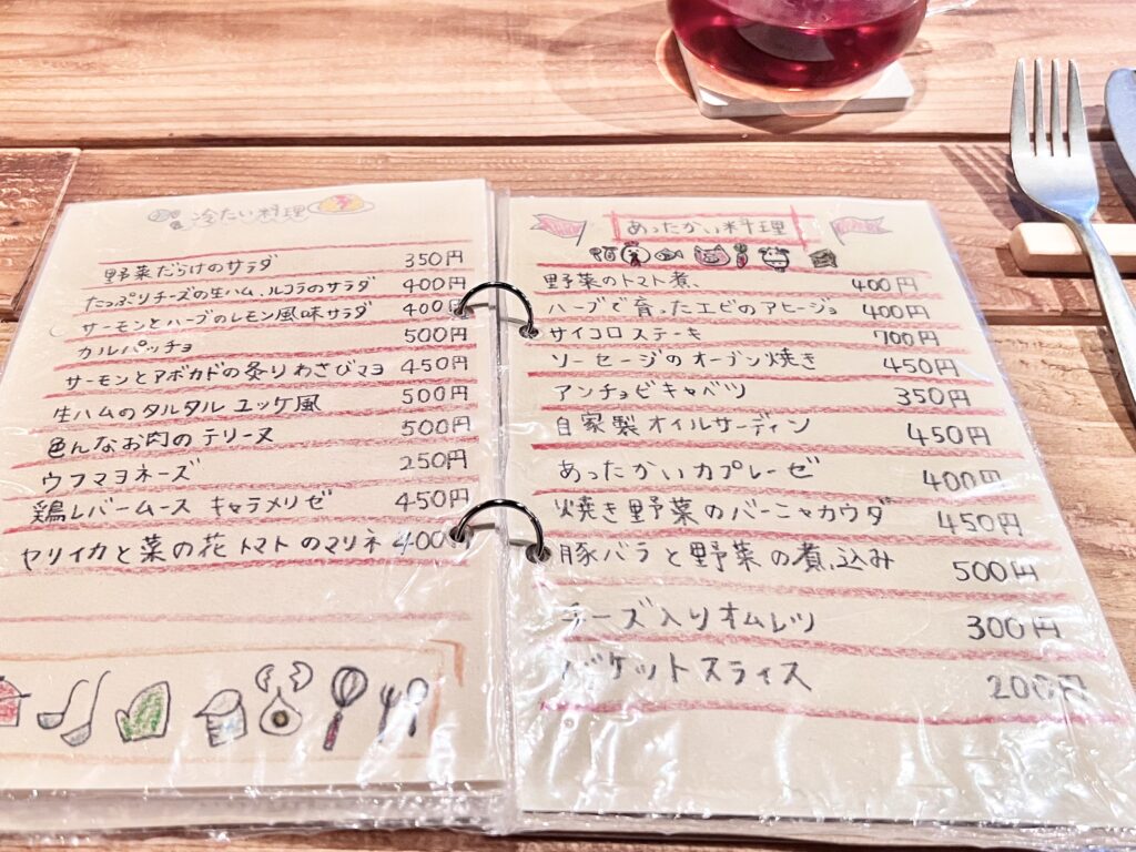 カテゴリは、冷たい料理、あったかい料理、メイン料理。200円からあります。いろいろ頼んでみることに!