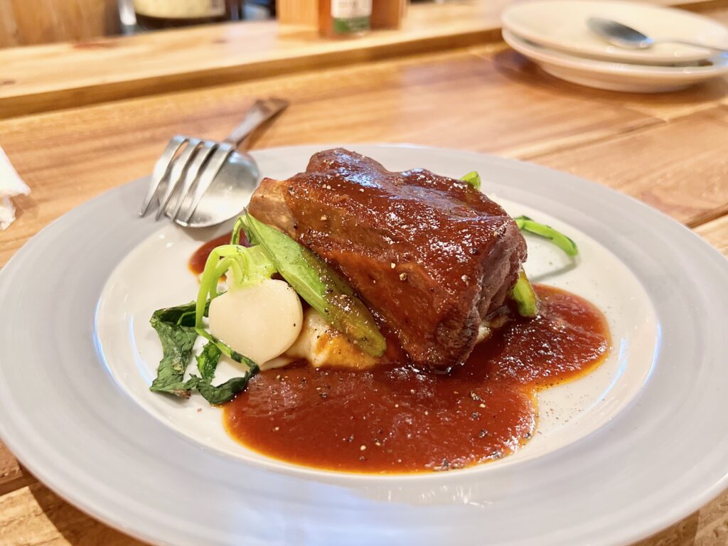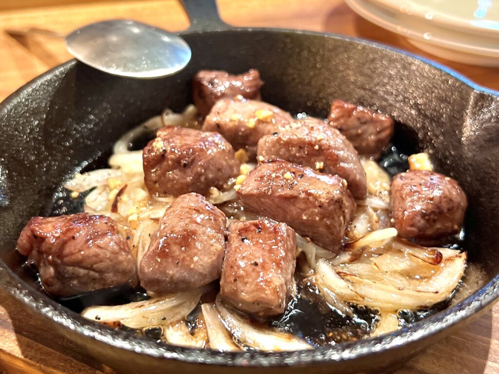 サイコロステーキとスペアリブのオーブン焼き。お肉を2種類も楽しめるし、メイン料理まで一皿800円〜!
