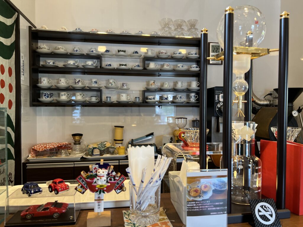 珈琲好きはもちろん、車好きや陶磁器好きにもたまらない空間。