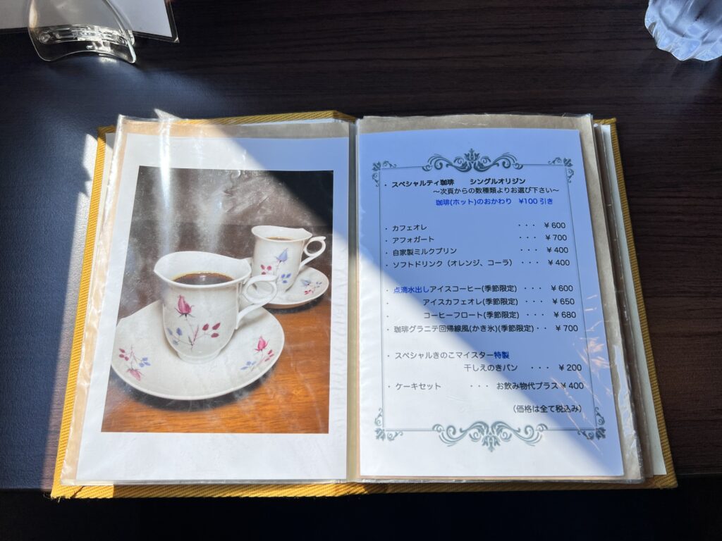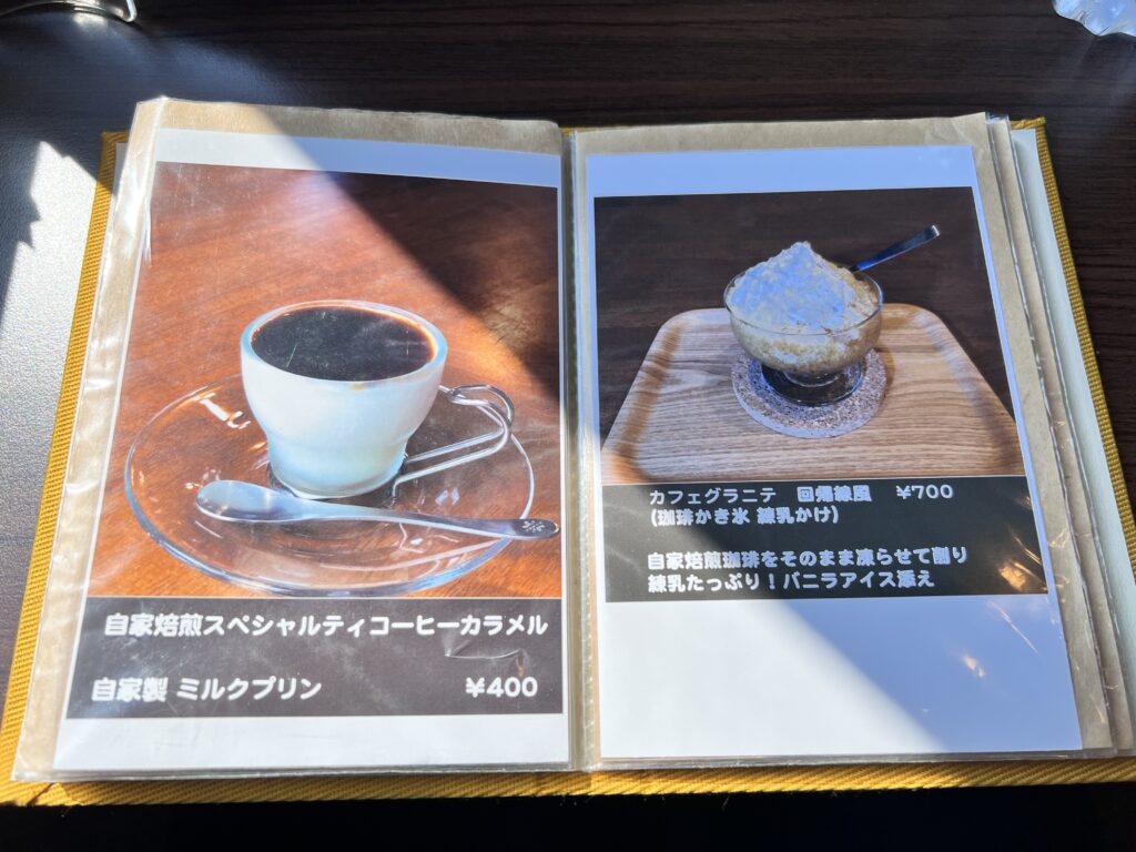 メニューはスペシャリティーコーヒーのドリップ、水出し、珈琲スイーツなど。スペシャリティーがリーズナブルでとっても魅力!