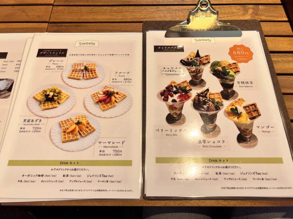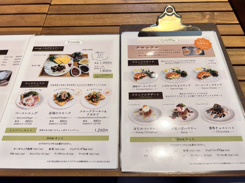 ワッフルランチはボリュームがあるとのこと。クロッフルはスープもセットになっていてお得。どちらもスイーツセットにされる方もいる、ということでした。