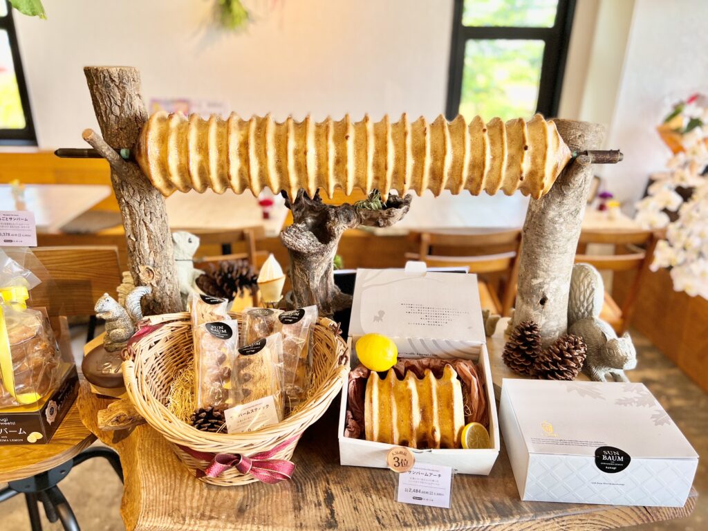 店内はバームクーヘンの可愛らしいディスプレイなどもあって、お土産も買いたくなる雰囲気。