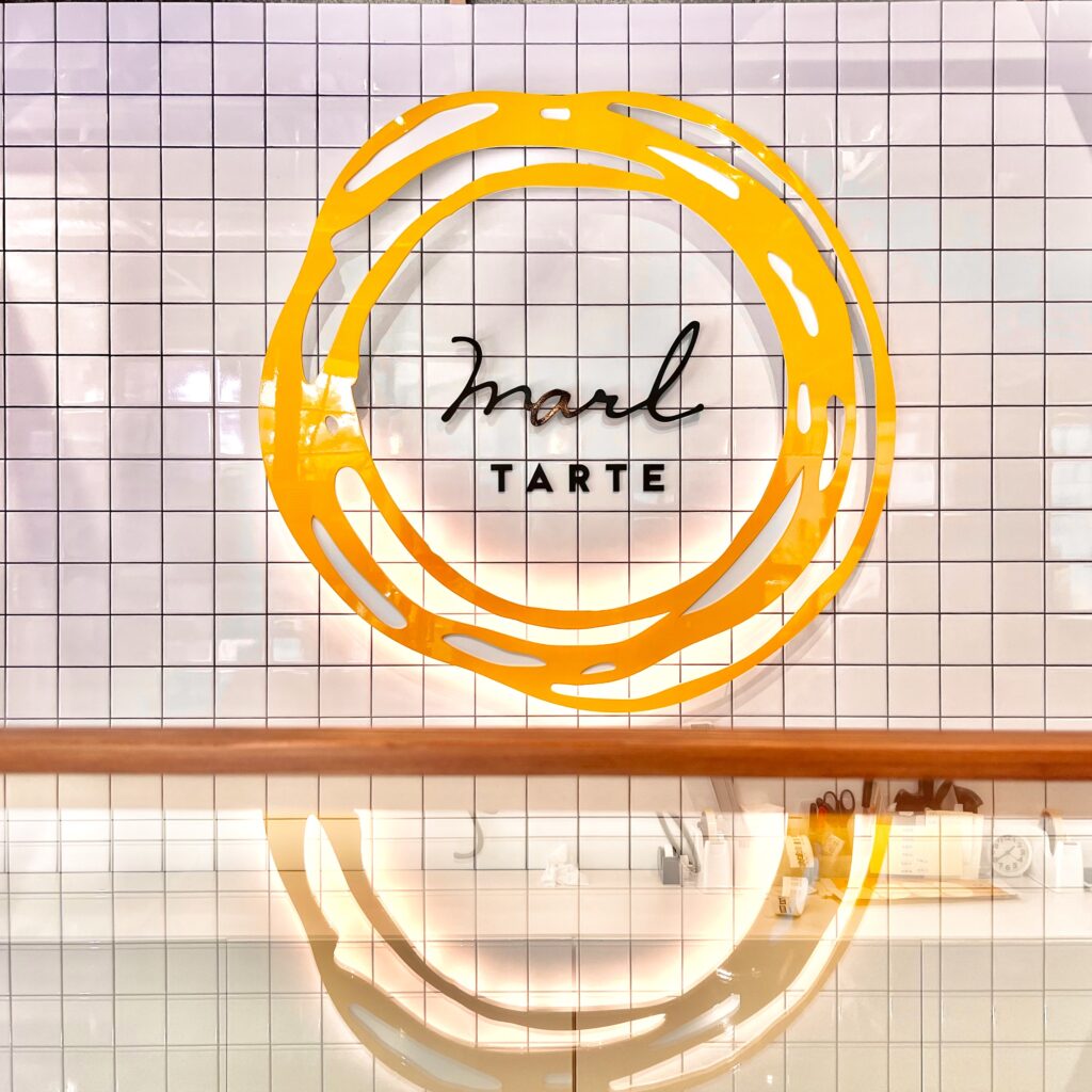並木通りを歩くと、黄色いマールタルトの旗が目印ですよ。丸い満月の様なロゴがかわいい。