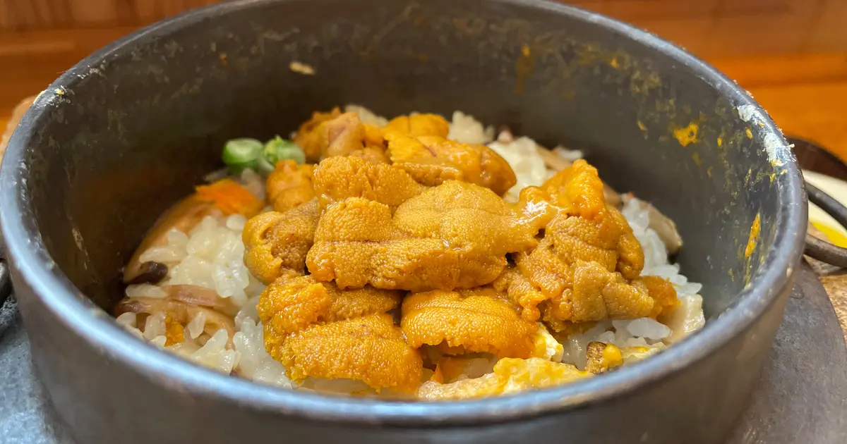 こちらのお店の看板には、大きな釜飯茶碗と共に「元祖うに釜飯」と書かれていてたので、まずは「うに釜飯」を頼むことに!