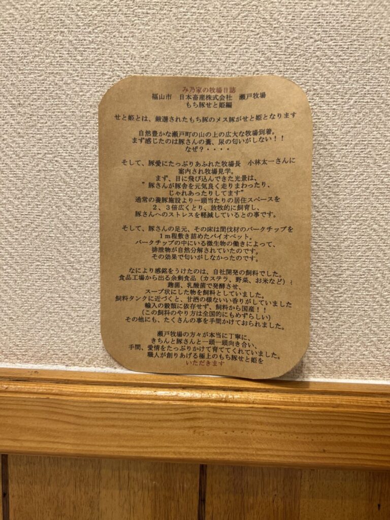豚肉は福山市にある「せと牧場」で飼育されるもち豚の雌、「せと姫」を使用
